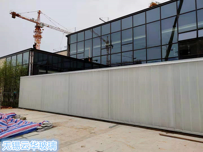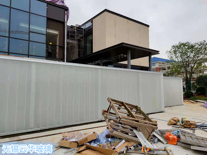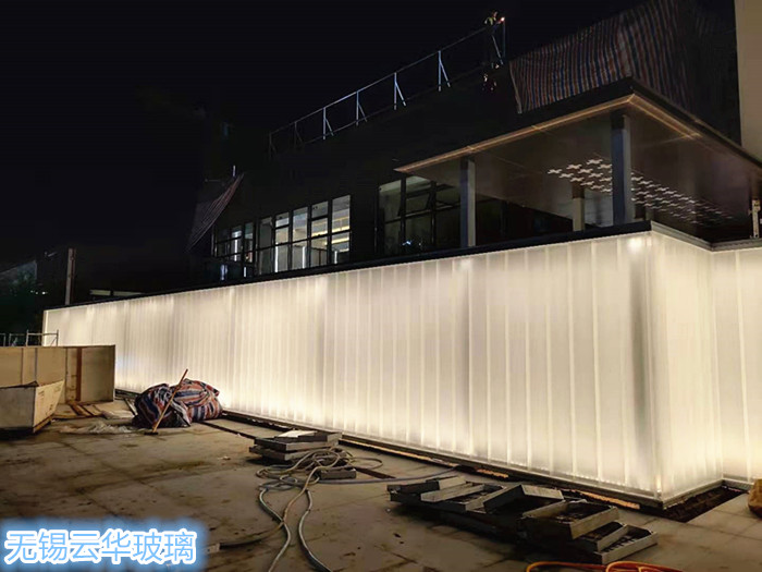 選用無錫云華K25-262*60*7 超白香梨紋噴砂U型玻璃